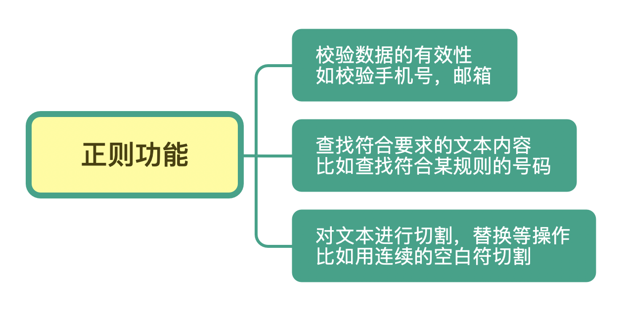 简单来说,正则是一个非常强大的文本处理工具,它的应用极其广泛。我们可以利用它来校验数据的有效性,比如用户输入的手机号是不是符合规则;也可以从文本中提取想要的内容,比如从网页中抽取数据;还可以用来做文本内容替换,从而得到我们想要的内容。