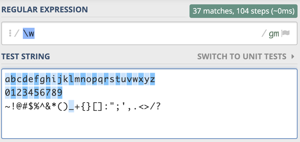 同样的,元字符 \w 测试用在这里: https://regex101.com/r/PnzZ4k/2