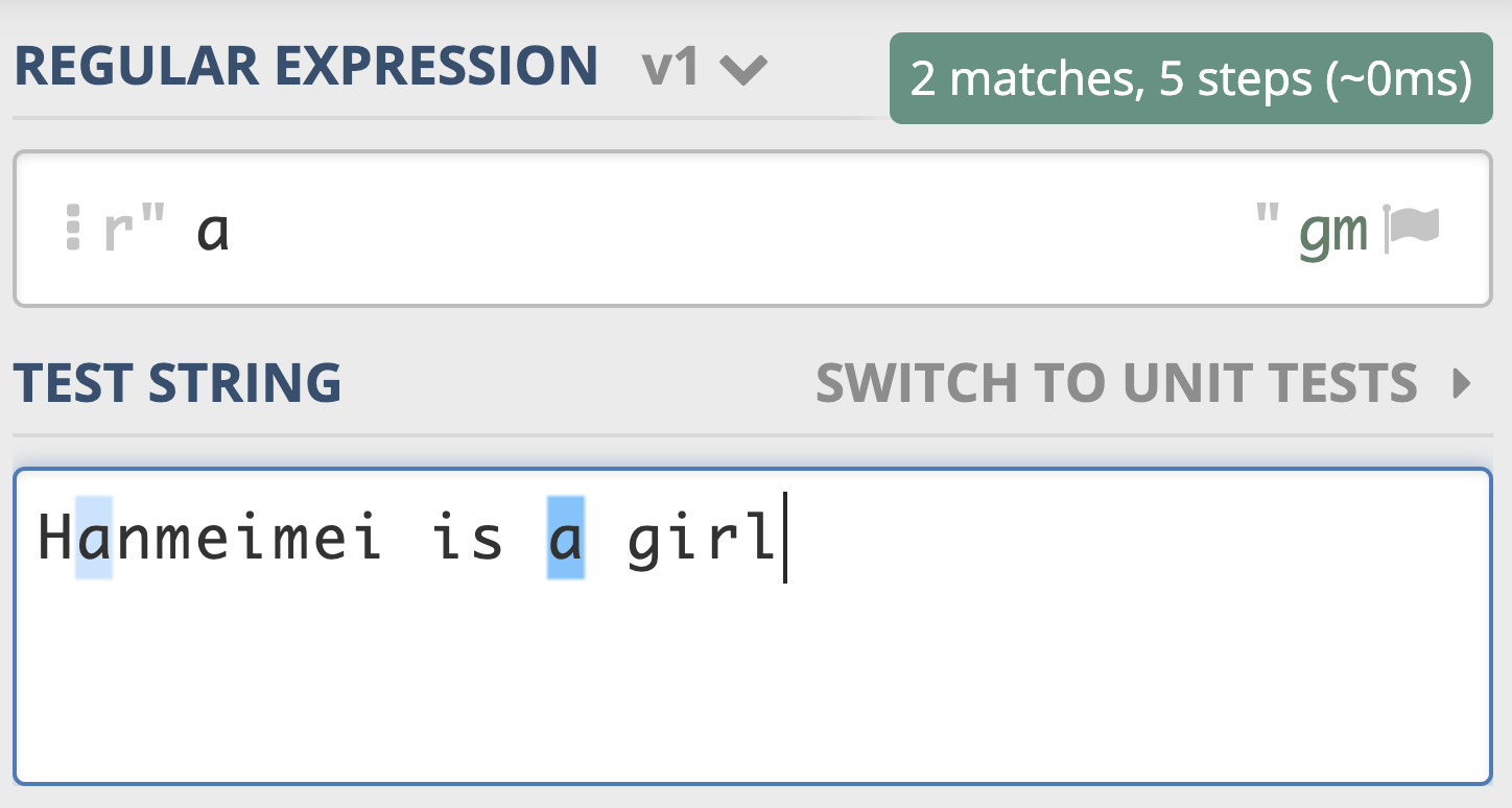 让我们再回过头看看正则表达式。正则表达式,简单地说就是描述字符串的规则。在正则中,普通字符表示的还是原来的意思,比如字符 a,它可以匹配“Hanmeimei is a girl”中的 H 之后的 a,也可以匹配 is 之后的 a,这个和我们日常见到的普通的字符串查找是一样的。