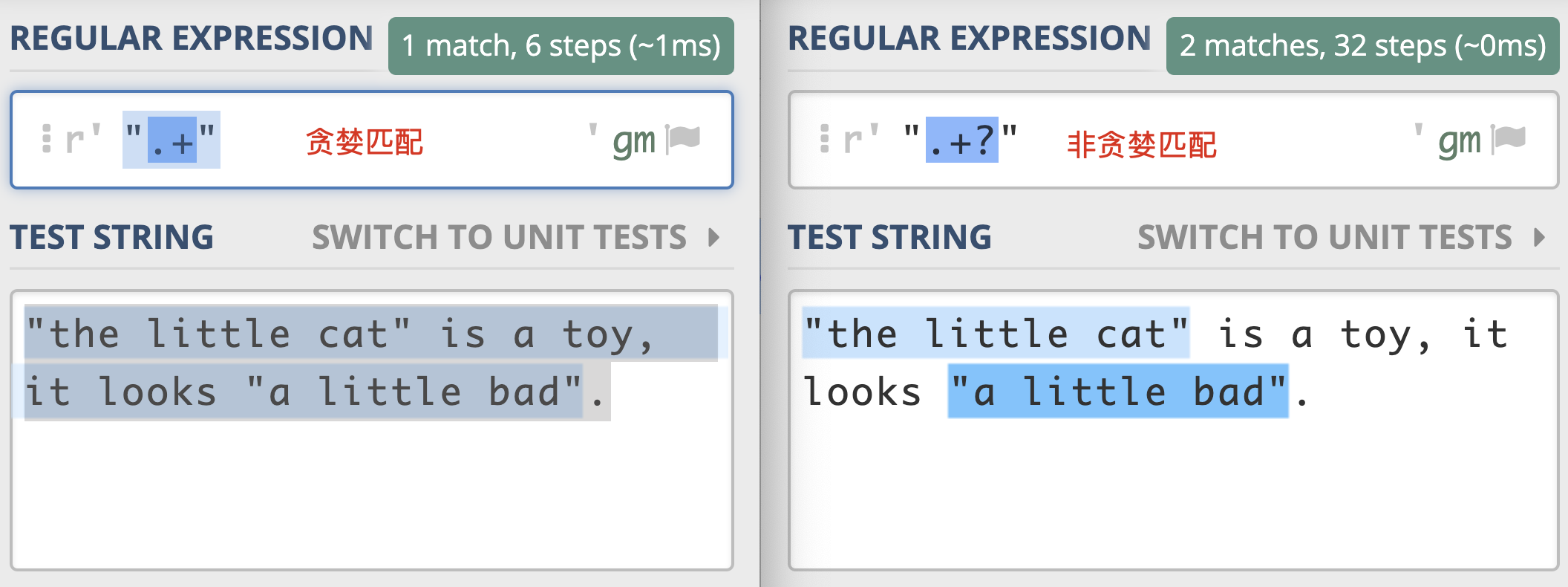 那到底怎么调试呢?我的经验是,复杂⼀点的正则表达式不能⼀次写对,这是很正常的。与其纠结“这个正则表达式看起来这么复杂,此处到底要用星号\还是加号+,不如先搞清楚,星号( \ )或加号( + )限定的到底是正则表达式中的哪一部分,对应要匹配文本中的哪一部分。这两个问题搞清楚了,整个问题就迎刃而解了。