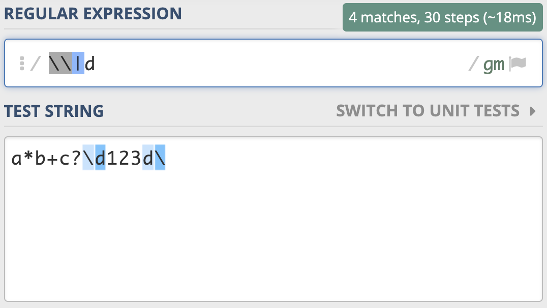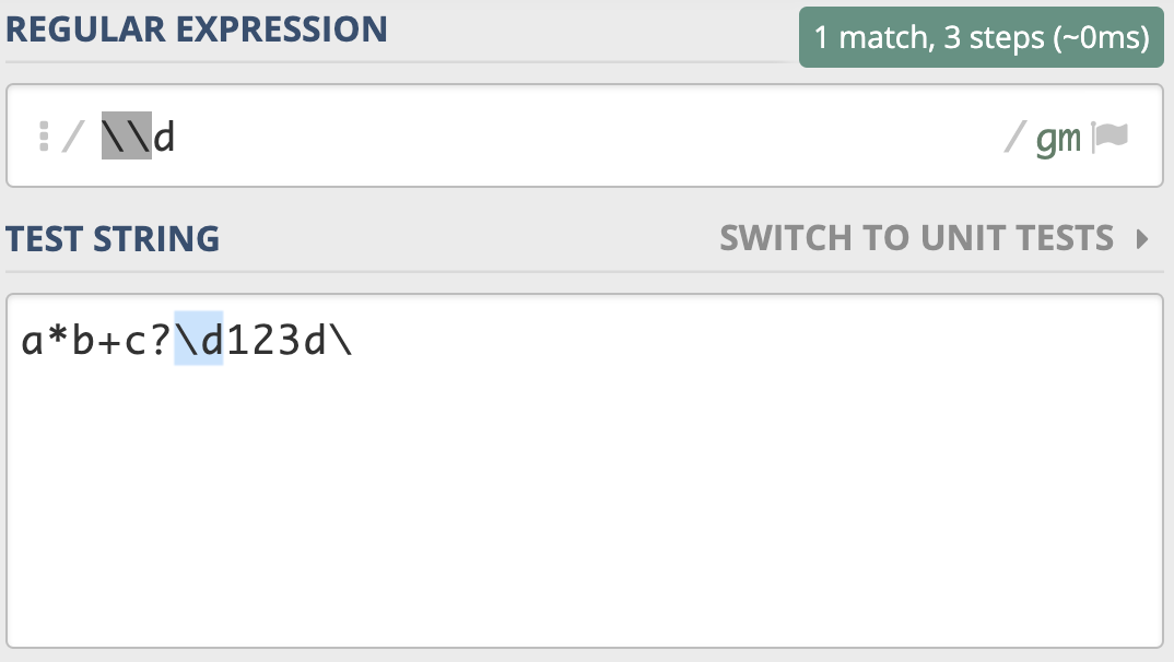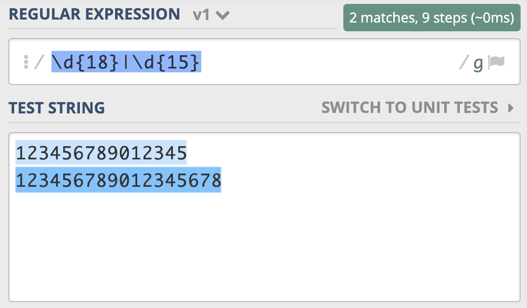 这是元字符 \d 测试用例的链接,你不妨测试一下: https://regex101.com/r/PnzZ4k/1