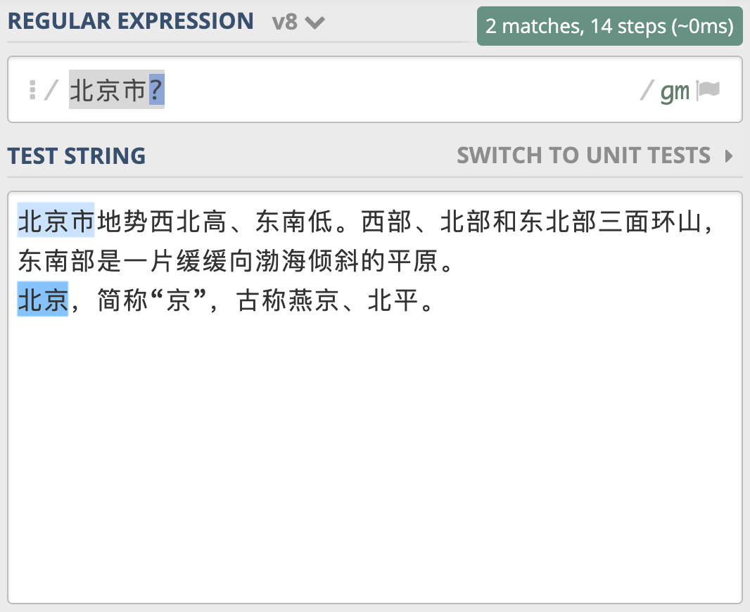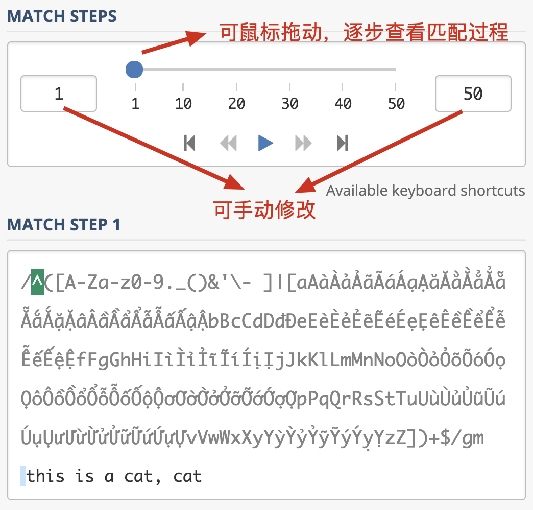 我们可以利用它给出正则示例、检测正则中的错误、解释正则表达式,以及利用它来练习和测试正则表达式。