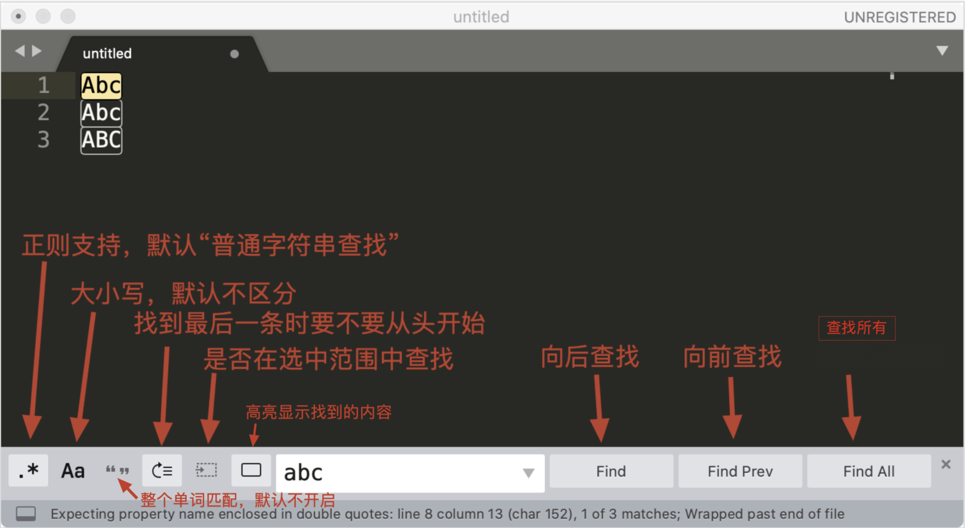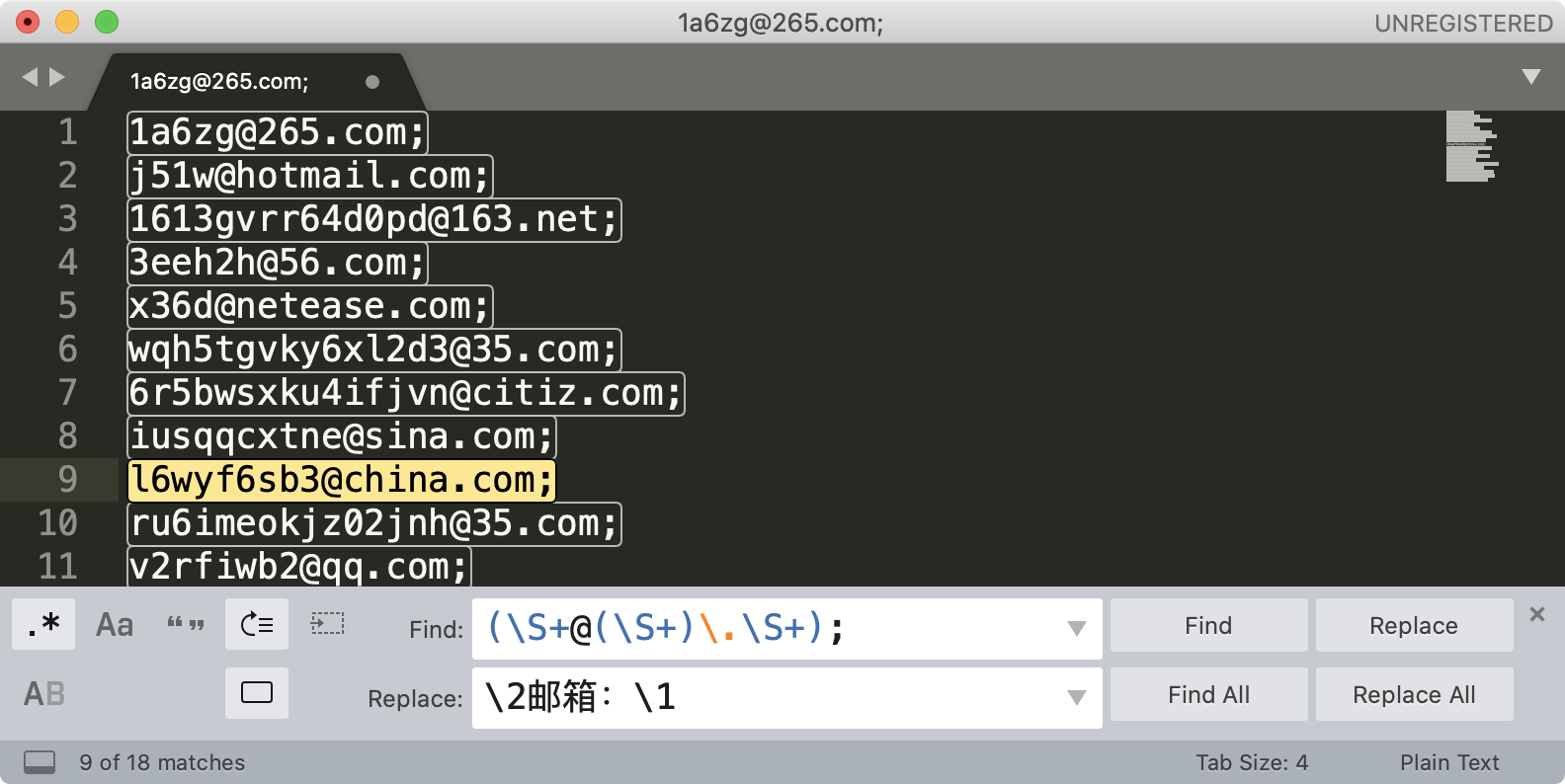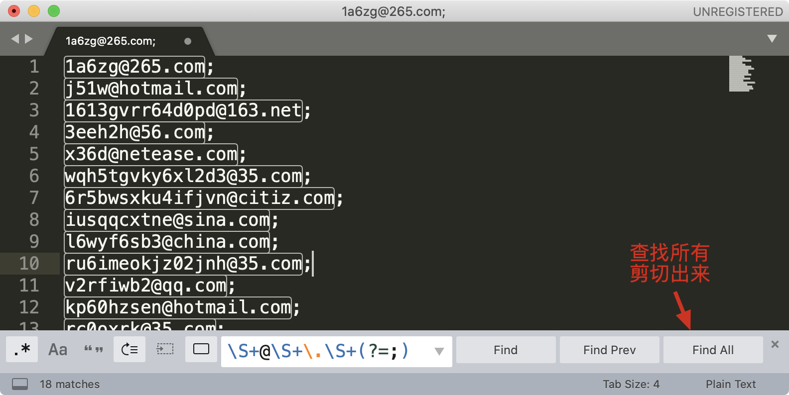 但除此之外,正则还可以做到普通的查找替换做不到的功能, 它真正的强大之处就在于可以查找符合某个规则的文本