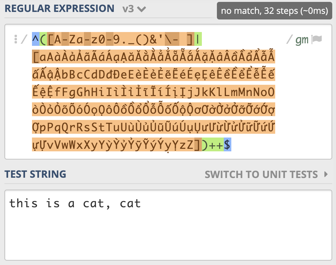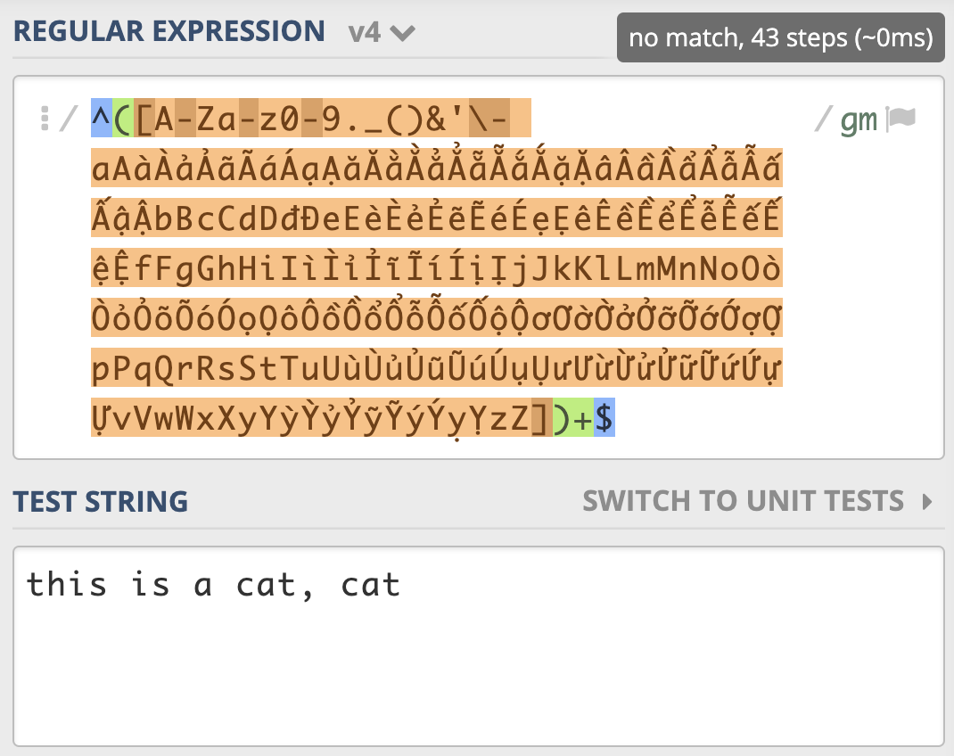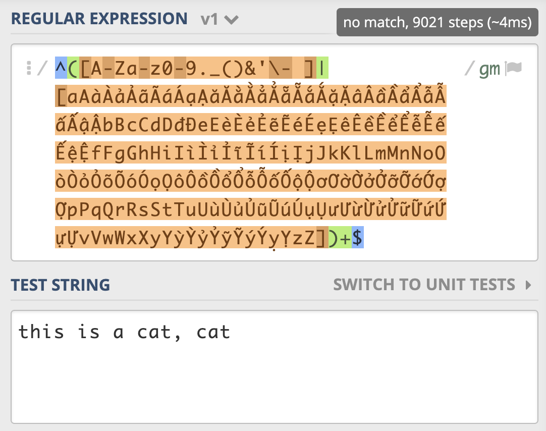 4. 不清楚正则的工作原理,结果写出的正则或者从网上随便找来的正则出现了性能问题。